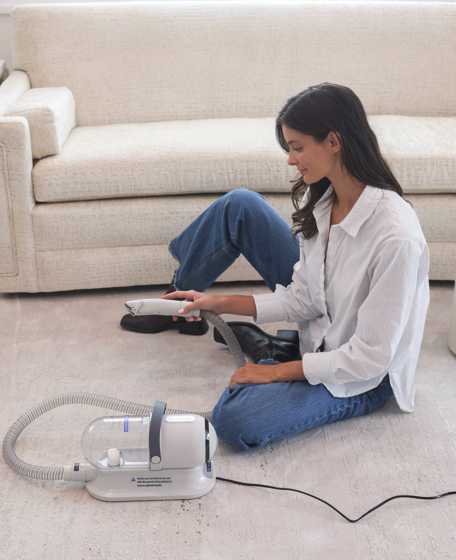 Transform your pet grooming experience with the Air Groom - an all-in-one professional grooming system that combines powerful suction with versatile grooming tools. Perfect for both cats and dogs, this innovative device helps keep your home clean while grooming your beloved pets.